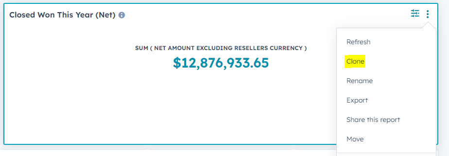 Locate the report you want to make a copy of. Click the 3 dots at the top right of the report.