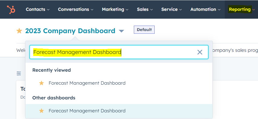 Navigate to the "Forecast Management Dashboard" in HubSpot.