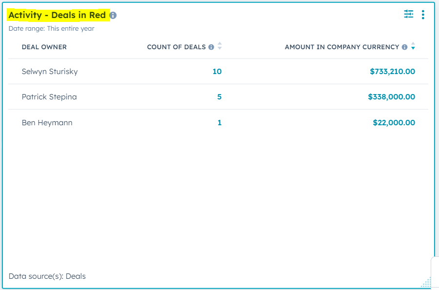 Viewing deals in red in HubSpot: