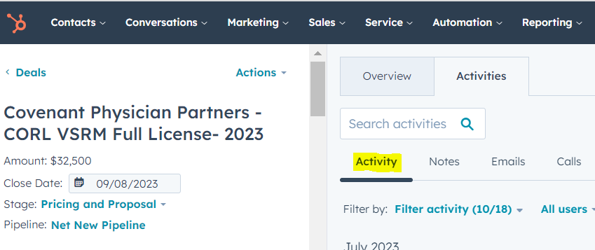 This explains how you can see activity on deals in either of the sales pipelines.