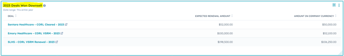 A downsell renewal is a renewal deal that has a lesser total amount than the previous year. This article explains how to view them inside of HubSpot.