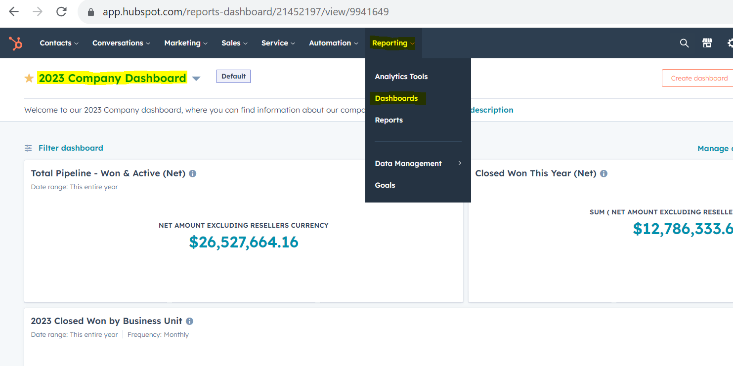 Navigate to the 2023 Company Dashboard. If you are unsure how to do this visit the article "How do I view specific dashboards?", in the FAQ's section of this knowledge base.
